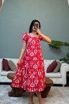 æ 3018-KIRMIZI KOLLARI BÜZGÜLÜ POPLİN ELBİSE