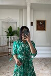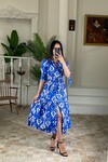 3026-SİYAH GÖMLEK YAKA KOL BÜZGÜ KISA KOL ELBİSE