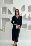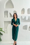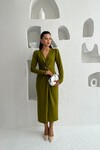 3588-OLİV İNCİ BROŞ DETAY BÜZGÜLÜ ELBİSE