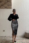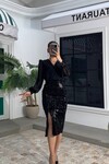3594-SİYAH ÜSTÜ ŞİFON ETEĞİ PULPAYET ELBİSE