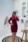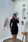 3648-SİYAH KADİFE ÖNDEN BAĞLAMALI KISA ELBİSE