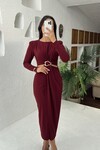 3655-SİYAH YANLARI AÇIK GOLD TOKA DETAYLI ELBİSE