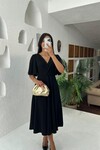 3707-SİYAH KRUVAZE YAKA KİLOŞ ELBİSE
