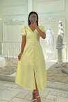 3773-PEMBE KAYIK YAKA DÜĞMELİ KETEN ELBİSE