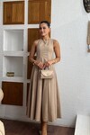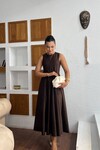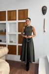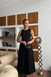 3825-SİYAH SÜET KUMAŞ SIFIR KOL KİLOŞ ELBİSE