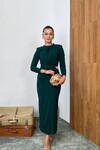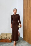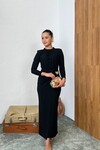æ 3855-SİYAH YAN BÜZGÜ TOKA DETAYLI UZUN ELBİSE