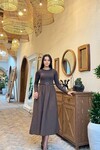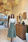 3857-BEJE OLİV ÜST KAŞKORSE ALT POPLİN KEMERLİ ELBİSE