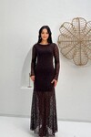 3874-KAHVERENGİ LEOPAR DESEN FLOK BASKI ELBİSE