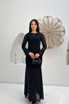 æ 3874-KAHVERENGİ LEOPAR DESEN FLOK BASKI ELBİSE