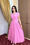 æ 3924-PEMBE POPLİN KUMAŞ KOMPLE DÜĞMELİ ELBİSE