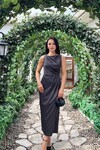 3937-SİYAH SATEN KUMAŞ PUANTİYE DRAPELİ ELBİSE