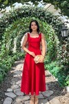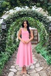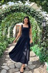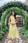 3938- SARI ARKADAN BAĞLAMA DETAYLI KARE YAKA KREP ELBİSE