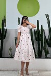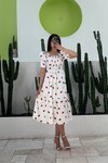 3007-KİRAZ DESEN KEMERLİ ELBİSE