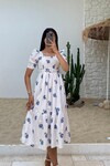 æ 3007-MAVİ ÇİÇEK DESEN ÖNÜ GİPELİ POPLİN ELBİSE