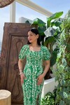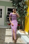3142-YEŞİL FULL GİPELİ YANDAN YIRTMAÇLI ELBİSE