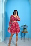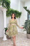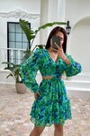 3256-YEŞİL ÇİÇEK DESEN YANLARI AÇIK ELBİSE