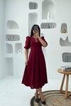3578-BORDO TAŞ FİYONKLU ELBİSE
