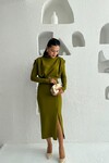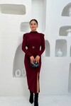 3587- BORDO BALIKÇI YAKA OMUZLARI PİLELİ KENDİNDEN TOKA KEMERLİ ELBİSE