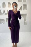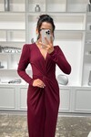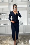 æ 3633-ZÜMRÜT SİMLİ BÜZGÜ DETAYLI ELBİSE