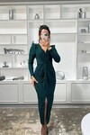 3633-ZÜMRÜT SİMLİ BÜZGÜ DETAYLI ELBİSE