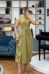 3718-HAKİ ASİMETRİK BROŞLU ELBİSE