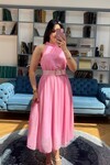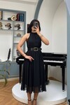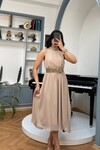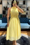 3734-SARI SIFIR KOL KEMERLİ ELBİSE