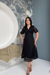 3740-SİYAH FİSTO ÇİÇEK DESEN ELBİSE