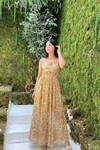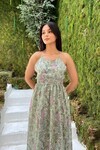 3790-YEŞİL ÇİÇEK DESEN SIRTI AÇIK FIFIRLI ELBİSE