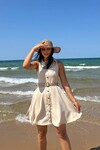 æ 3793-SU YEŞİLİ HASIR KEMERLİ KISA ELBİSE