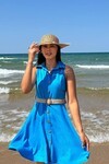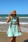3793-SU YEŞİLİ HASIR KEMERLİ KISA ELBİSE