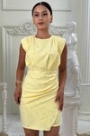 3794-SARI TAŞLI KISA ETEĞİ DRAPELİ ELBİSE