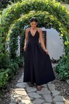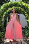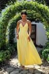 3795-SARI V YAKA TAŞ DETAY KİLOŞ ELBİSE