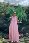 3807-PEMBE HALTER YAKA KRİNKIL KUMAŞ ELBİSE