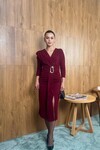 3829-BORDO OLİPS KEMER DETAYLI ELBİSE