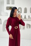 3831-BORDO ELİPS TOKALI ÖNDEN DÜĞÜMLÜ SANDY ELBİSE