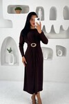 æ 3831-BORDO ELİPS TOKALI ÖNDEN DÜĞÜMLÜ SANDY ELBİSE