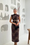 æ 3840-YEŞİL DALMAÇYA DESEN DESEN YANLARI AÇIK TOKALI ELBİSE
