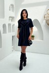 3841-HAKİ ÖNÜ ZIMBALI SÜET KISA ELBİSE