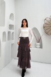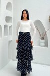 3877-SİYAH KAT KAT PUANTİYE DESEN FIRFIRLI ŞİFON ETEK