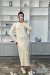 FUŞYA FİTİLLİ YIRTMAÇLI TRİKO ELBİSE